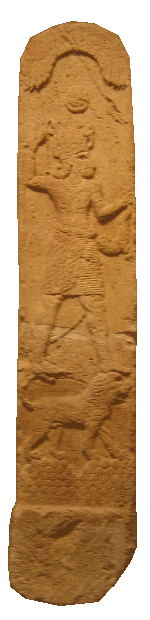 Baal, le dieu de l'orage, de la pluie fécondante, représenté brandissant sa massue symbolique de la foudre, fait jaillir du sol les feuillages exprimant ainsi la renaissance de la végétation. Il est souvent coiffé, soit à l'image d'une couronne égyptisante en or ou d'une tiare à couronnes d'influence mésopotamienne.